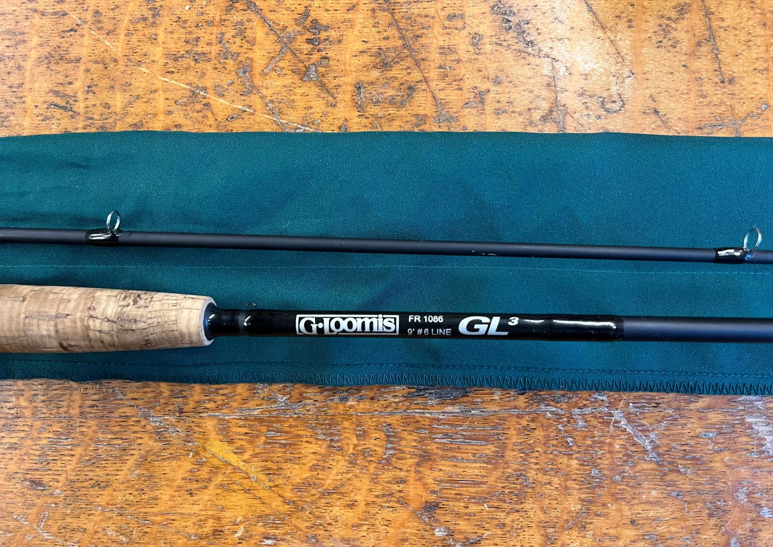 Used, G Loomis 9’, 6 weight Graphite, GL3 fly rod, model FR1086. In very good condition, and will fish beautifully. Comes with sock
